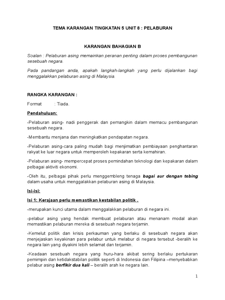 Contoh Karangan Bahasa Inggeris Mudah - Scribd Contoh Karangan. Latihan Karangan SPM 2009 Tingkatan 5 Latihan Karangan Berdasarkan Topik dalam Buku Teks Bahasa Melayu Tingkatan 5. Semua pihak harus duduk semeja dan mencari jalan untuk menyelesaikan kemelut.